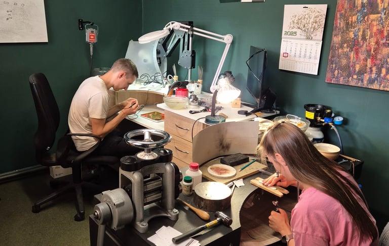 Su mano pagalba jūs galėsite pasigaminti papuošalą sau arba draugui visiškai nuo nulio. Mes kalsime, liesime, formuosime, lituosime ir galiausiai poliruosime iki galutinio meno kūrinio. Jūsų draugai nepatikės, kad jūs patys pagaminote dirbinį.